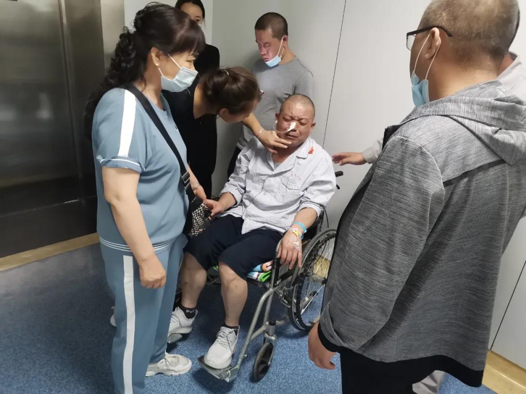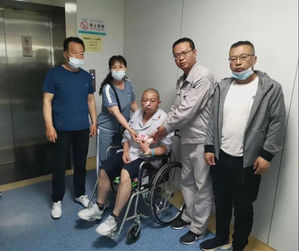 在醫(yī)院,我們見到了剛做完康復(fù)訓(xùn)練的梁永軍,臉色蒼白的他,鼻孔里插著胃管,左手上密密麻麻的血管已被貼滿了白色膠布,兩眼發(fā)呆靜靜地坐在輪椅上。當(dāng)我們慢慢靠近他時(shí),他便不由自住的留下了眼淚,病痛讓他無(wú)法言語(yǔ)。領(lǐng)導(dǎo)們向親屬了解了他最近的病情狀況、醫(yī)療費(fèi)用等問(wèn)題,并親手將“榆化愛心基金會(huì)”的一萬(wàn)元愛心及時(shí)救助金送到他的手中。臨行前囑咐他“安心養(yǎng)病,聽醫(yī)生安排,堅(jiān)持鍛煉,及早康復(fù),早日回歸崗位。”不會(huì)說(shuō)話的他,只能用眼神傳遞著他的情感,不停的點(diǎn)頭,似有話說(shuō)卻只能蹦出個(gè)“咿咿呀呀”。他的家人們表示非常感謝公司的關(guān)心,為這個(gè)不堪重負(fù)的家庭雪中送炭。
