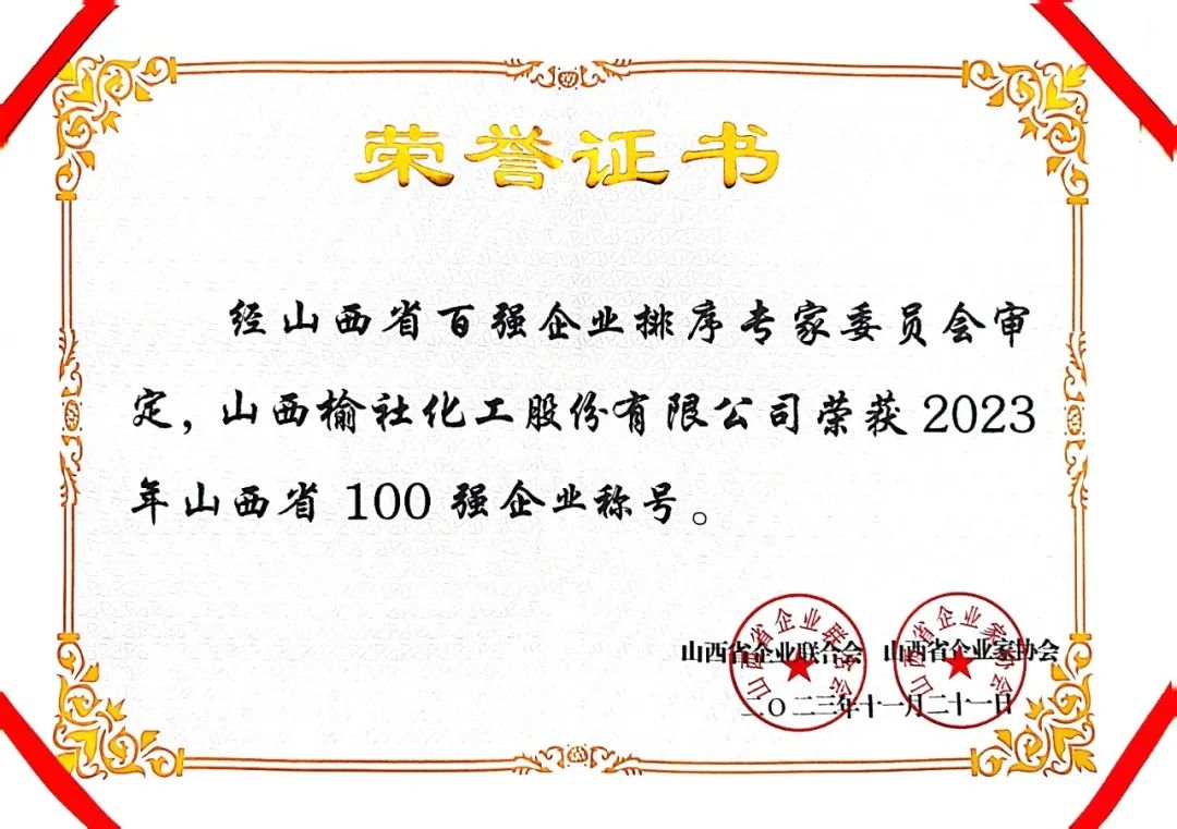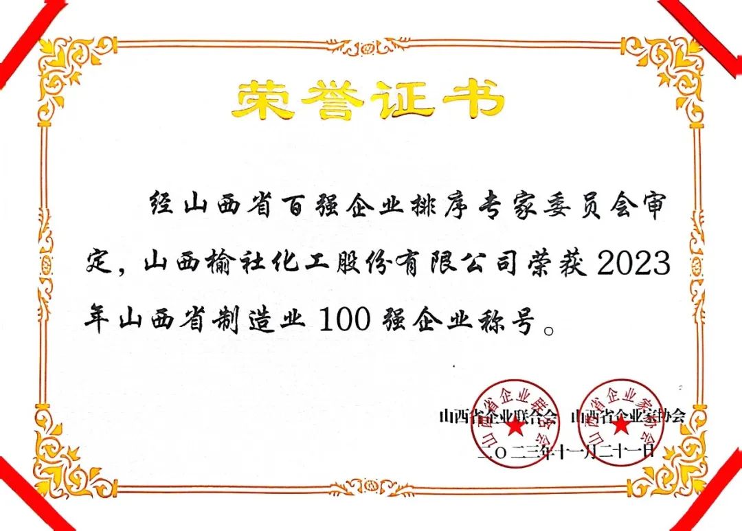 11月21日,山西省企業(yè)聯(lián)合會(huì)、山西省企業(yè)家協(xié)會(huì)在太原組織召開(kāi)了2023山西100強(qiáng)企業(yè)高峰論壇,論壇發(fā)布了2023山西企業(yè)100強(qiáng)、制造業(yè)企業(yè)100強(qiáng)、服務(wù)業(yè)企業(yè)100強(qiáng)等排行榜,同時(shí)發(fā)布《山西企業(yè)100強(qiáng)(年度)發(fā)展報(bào)告》。公司榮列2023年山西省100強(qiáng)企業(yè)第79位,2023年山西省制造業(yè)100強(qiáng)企業(yè)第60位。