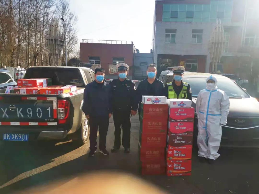 遠(yuǎn)安物流安全科科長周杰、市場科科長岳二軍分別帶隊(duì)前往榆社高速北口、高速南口、高速東口慰問防疫一線的執(zhí)勤交警、醫(yī)護(hù)人員,為他們送去了礦泉水、火腿腸、方便面等食物,為疫情防控提供了強(qiáng)有力的物資保障。